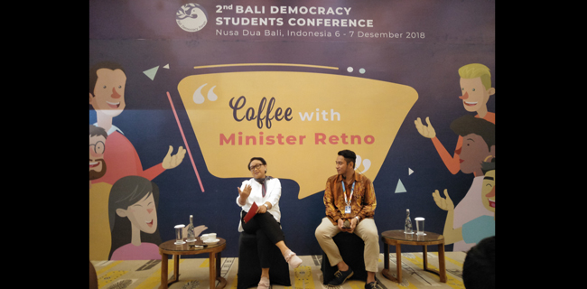 Sebelum diadakan acara utama BDSC II pada 6-7 Desember, Menlu Retno mengajak para peserta melakukan diskusi hangat mengenai proses demokrasi.