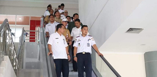 Walikota Lubuklinggau, H SN Prana Putra Sohe, mengecek langsung pembangunan bandara. Mulai dari Menara Air Traffic Control (ATC), eskalator, dan bangunan pendukung lainnya.