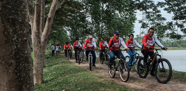 "Kami berkesempatan menunjukkan bagaimana perusahaan mengonservasi air melalui pembangunan danau buatan serta penghijauan kawasan sekitar pabrik, dengan cara bersepada melintasinya," kata Managing Director Sinar Mas, Saleh Husin yang turut bersepeda, Jumat (22/12).