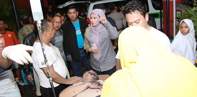 Bupati Irna didampingi Kepala Biro Operasional Polda Banten Kombes A. Roemtaat, Kapolres Pandeglang AKBP Indra Lutrianto Amstono, Dandim 0601 Letkol Inf Fitriana Nur Heru Wibawa, Asda Pemerintahan Agus Priyadi Mustika, Kadis PUPR Girgi Jantoro, Kepala BPBD Asep Rahmat, Direktur RSUD dr. Firman.