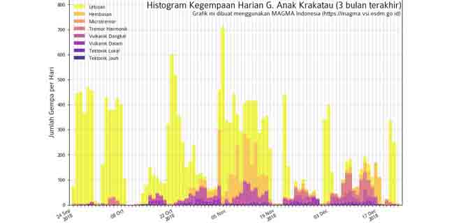 Kepala Pusat Data, Informasi dan Humas Badan Nasional Penanggulangan Bencana (BNPB), Sutopo Purwo Nugroho menerangkan, selama tiga bulan terakhir sejak Juni 2018, Gunung Anak Krakatau hampir setiap hari meletus.