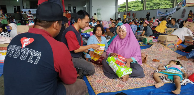 Bekerja sama dengan Korem 043/Gatam, Kodim 0421 LS, dan dinas sosial pemerintah kabupaten setempat, AGP memberikan bantuan untuk 4.000 pengungsi atau sekitar 500 kepala keluarga (KK). Bantuan ini diberikan di tempat pengungsian Rajabasa, Lampung Selatan.