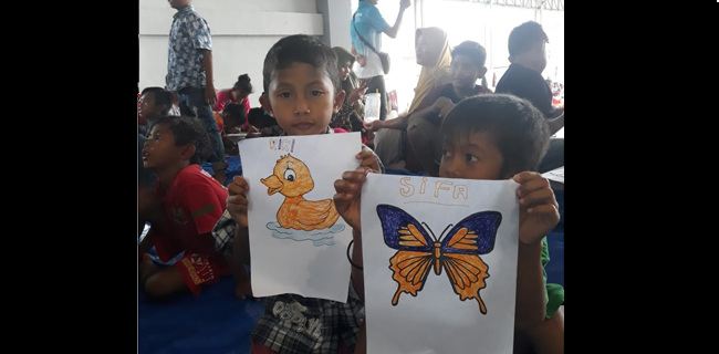 Trauma healing dilakukan pada anak-anak dengan mengikuti beberapa permainan sederhana yang diadakan oleh relawan PLN Lampung. Selain itu, disediakan juga peralatan alat tulis untuk anak-anak menggambar dan mewarnai. Ada juga pembagian boneka yang disumbangkan oleh para relawan dan donatur.