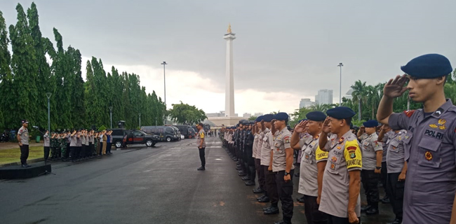 Meskipun diguyur hujan, 20 ribu personel gabungan TNI Polri ikut apel dengan inspektur upacara Kapolda Metro Jaya Irjen Idham Aziz dan Pangdam Jaya Mayjen TNI Joni Supriyanto.