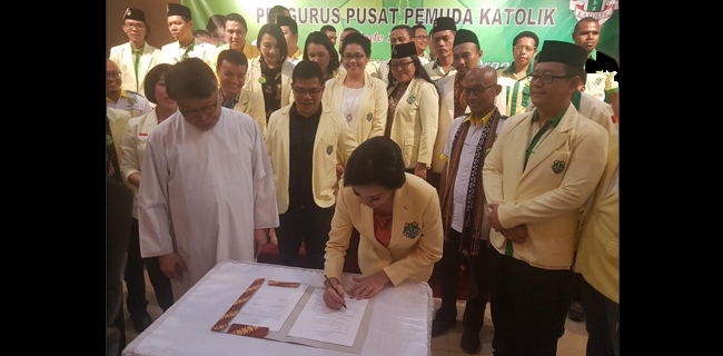 "Hal ini sesuai dengan arahan Ketua Pemuda Katolik, Ibu Karolin, yang menekankan bahwa isu kebangsaan hanya bisa dilawan jika pemudanya bersatu dan memiliki satu visi. Oleh karena isu kebangsaan dapat ditepis dengan cara membangkitkan para pemuda rantau dari daerah asal yang sama di tempat di mana mereka sekarang berada. Kita semua yang berada di Pemuda Katolik mempunyai tanggung jawab yang sama yakni, menjaga NKRI dan memelihara dan sekaligus Pancasila dengan Bhinneka Tunggal Ika-nya," tegas Michelle Wondal.