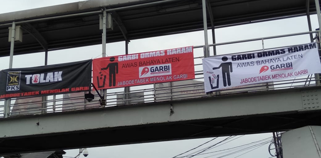Ada tiga spanduk yang dipasang di antaranya warna hitam berlogo lambang partai PKS. Sementara yang berwarna merah bertuliskan Garbi Ormas Haram, Awas Bahaya Laten Garbi dan di bawahnya ada tulisan Jabodetabek Tolak Garbi.