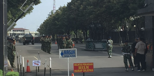 Sementara, penjagaan di depan Mako Brimob pun tampak biasa hanya aparat Kepolisian membentangkan kawat duri di depan pintu masuk markas.
