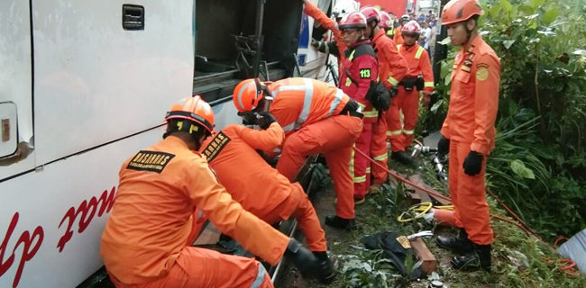 Aparat kepolisian setempat dibantu Basarnas Bandung tengah berusaha melakukan evakuasi bangkai bus tersebut. Sementara para korban sebagian sudah dibawa ke rumah sakit terdekat.
