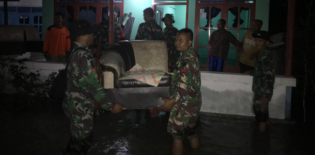 Sesuai dengan perintah Danyonif R 631/Atg, Mayor Inf Bayu Yudha Pratama, personil anggota Kipan B Yonif R 631/Atg membantu masyarakat terdampak banjir di RT 09 dan RT 10, Desa Sungai Hijau.