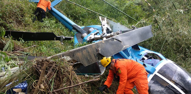 Helikopter milik PT Air Transport Service jatuh di Jayaratu, Sariwangi, Tasikmalaya, Jawa Barat.