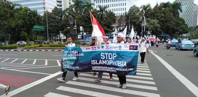 Mereka membawa pocoh putih dengan bercak merah dan spanduk bertuliskan “Stop Islamophobia: Aksi Damai Kemanusiaan Bersama Peduli 50 Korban Syahid di New Zealand". Pocong dan spanduk itu diarak dari mulai Bundaran Hotel Indonesia menuju Patung Kuda.