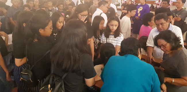 Sebelum dimakamkan, digelar misa arwah di Gereja Paroki Yohanes Penginjil yang dihadiri hampir 1000 orang.
