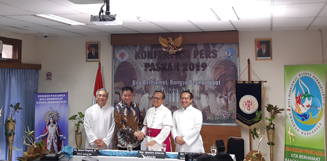 "Konteksi internal adalah kita berhikmat bangsa bermartabat. 2016 mengajak umat katolik untuk mendalami, menghayati dan mewujudkan nilai Pancasila. Masing-masing tahun sila setiap tahun," jelas Mgr. Ignatius Suharyo dalam konferensi pers perayaan paskah di Gedung Karya Pastoral Keuskupan Agung Jakarta (KAJ), Minggu (21/4).