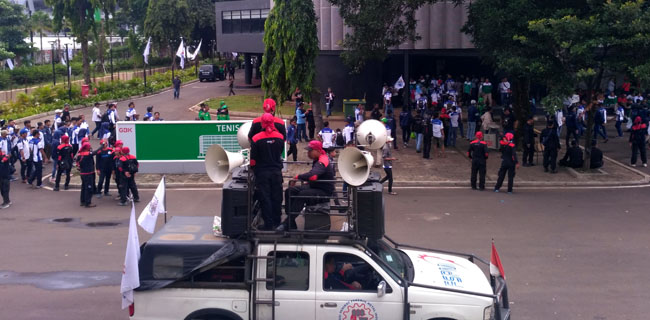 Kantor Berita Politik RMOL di lokasi, nampak para buruh dari berbagai organisasi mulai berdatangan.