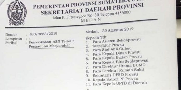 "Bahwa untuk mewujudkan tertib administrasi dan kontrol atau pengawasan terhadap ASN di lingkungan Pemprov Sumut dipandang perlu menerbitkan surat aquo (tersebut)," ujar Andy.