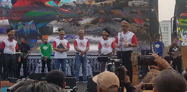 "Kami meminta izin kepada Pak Gubernur untuk melaksanakan acara di sini, di mana ada monumen Pembebasan Papua Barat, budaya bakar batu adalah simbol persatuan," katanya pada Minggu (27/10).