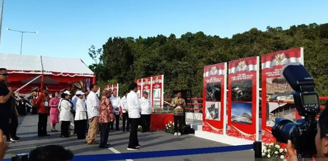 Saat peresmian, Jokowi langsung menuju jembatan untuk menekan tombol peresmian jembatan sekaligus penandatanganan prasasti.