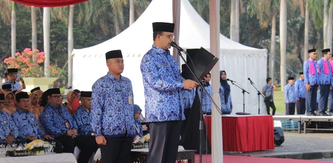 Anies meminta kepada Badan Kepegawaian Daerah (BKD) untuk menyebarkan naskah sambutan Presiden Joko Widodo melalui grup-grup yang ada, sehingga semua jajaran bisa membaca.
