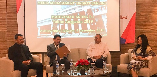 Mahkamah Agung kembali menggelar workshop dan uji kompetensi untuk hubungan masyarakat. Kegiatan digelar bersama dengan London School of Public Relations (LSPR) selama 5 hari, terhitung dari Senin (9/12) hingga Jumat (13/12) di Hotel Ashley, Wahid Hasyim, Jakarta.