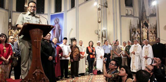 Demikian disampaikan Gubernur Provinsi DKI Jakarta, Anies Baswedan dalam sambutannya di Gereja Katedral Jakarta, Selasa malam (24/12).