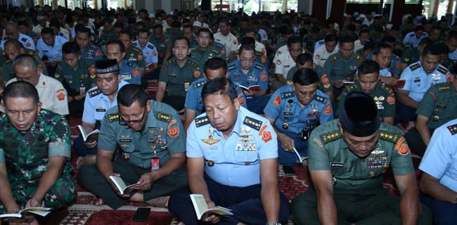 Doa bersama umat Muslim di Masjid Panglima Soedirman, dipimpin oleh KH. Dr. Mulyadi Efendi, dihadiri oleh Kasum TNI Letjen Joni Supriyanto, Irjen TNI Letjen M. Herindra, dan Danjen Akademi TNI Laksdya Aan Kurnia, Koorsahli Panglima TNI Mayjen Sudirman, para Asisten Panglima TNI dan Kabalakpus TNI.