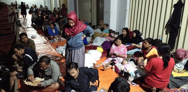 Ratusan warga tersebut terpaksa mengungsi ke Gudang logistik tersebut lantaran belum didirikan tenda pengungsian.