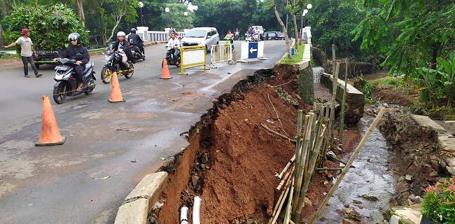 Sebelumnya, karena tak kuat menahan debit air yang cukup kencang, turap pembatas di Jalan Pondok Jagung Raya amblas pada Rabu (1/1).