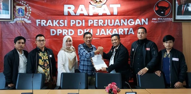 Rombongan ini diterima oleh anggota DPRD DKI Fraksi PDIP, Dwi Rio Sambodo dan Waode Herlina