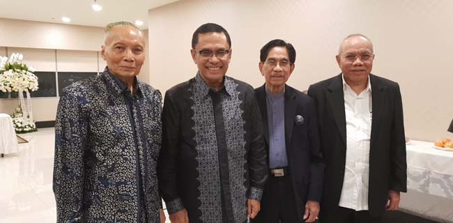Saleh bersama Wardiman Djojonegoro (mantan Mendikbud), Adrianus Mooy (mantan Gubernur BI), dan Lambok (Staf Khusus Menko Kemaritiman dan Investasi) melayat Almarhum Sumarlin, di rumah duka RS MRCC Silowm, Semanggi, Jakarta Pusat, Kamis malam.