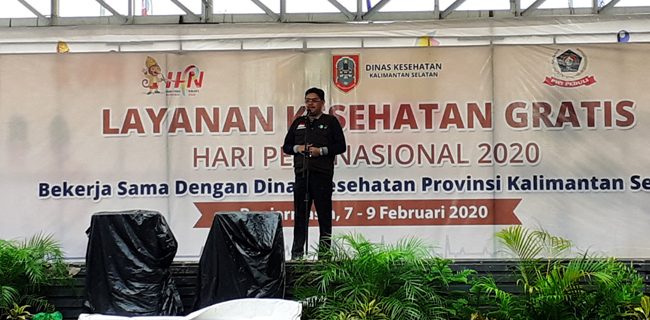 Dalam acara pembukaan layanan kesehatan gratis di Taman Siring 0 Kilometer Banjarmasin, di Jalan Jendral Sudirman, Jumat pagi ini (7/1), Kepala Dinas Kesehatan HM. Muslim menyampaikan pesan Gubernur.