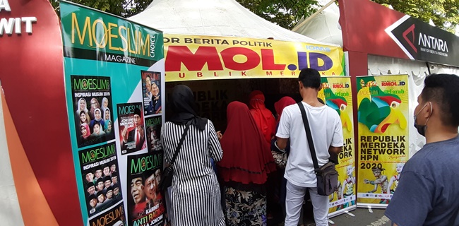 Booth pameran RMOL Network yang dekat dengan pintu masuk utama pameran, tidak luput dari penglihatan pengunjung. Ratusan orang rela mengantre untuk mendapatkan beberapa merk majalah yang dikeluarkan.