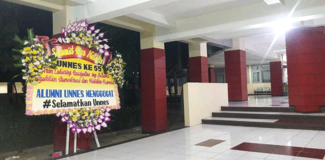 Perwakilan alumni, Danang Cahya Firmansiah mengatakan, pihaknya menyayangkan hal-hal yang saat ini terjadi di Unnes. Setelah memperhatikan kondisi yang semakin tidak kondusif itu, alumni sepakat mengirimkan karangan bunga ke kantor Rektorat Unnes.