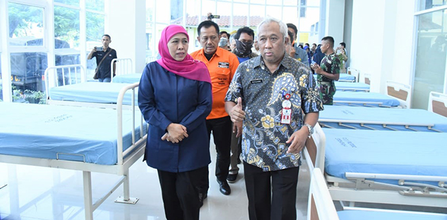 Gubernur Jatim Khofifah Indar Parawansa meninjau kesiapan tambahan ruang isolasi di RS Jiwa Menur. Saat ini, kasur perawatan untuk ruang isolasi sudah siap tersedia dan tertata di gedung baru RS Jiwa Menur.