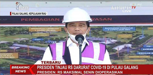 Secara umum, proses pembangunan telah selesai. Namun Jokowi mengungkapkan, penyelesaian RS Darurat Pulau Galang ini terbilang terlambat, karena terdapat kendala tekhnis.