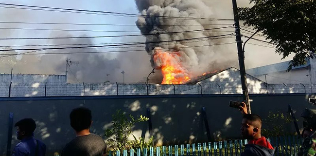 Dari video yang beredar, api menghanguskan salah satu gedung. Asap tebal nampak membumbung ke langit.