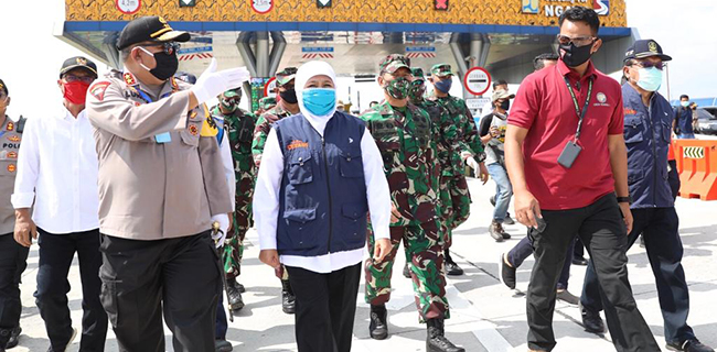 Untuk itu, Gubernur Jawa Timur Khofifah Indar Parawansa, Kapolda Jawa Timur Irjen Pol Luki Hermawan dan Pangdam V Brawijaya Mayjend TNI Widodo Iryansyah melakukan peninjau check point tol Ngawi untuk melakukan screening para pemudik.