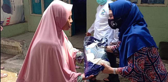 Azizah menyerahkan bantuan berupa bahan pokok kepada warga terdampak Covid-19. Bantuan tersebut berupa beras sebanyak 2,5 ton, serta bahan kebutuhan pokok lainnya.