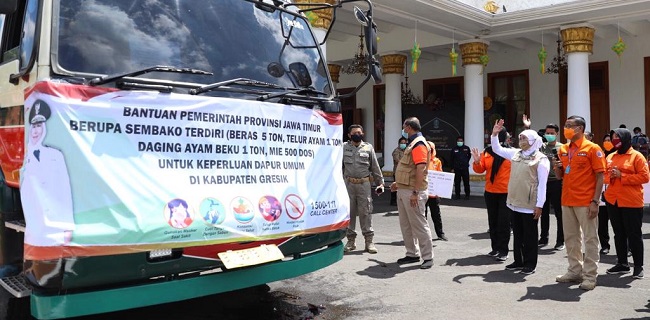 Untuk memperlancar pelaksanaan PSBB, hari ini, Senin (27/4), Pemerintah Provinsi Jawa Timur mengirim bantuan awal berupa sembako ke Kabupaten Sidoarjo dan Kabupaten Gresik untuk menyuplai kebutuhan dapur umum yang akan dibuka selama PSBB berlangsung.