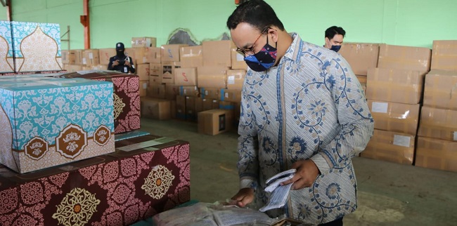 Anies menambahkan, saat ini sudah diproduksi 1,5 juta masker kain di gudang PD Pasar Jaya yang mulai dilakukan pengemasan dan siap didistribusikan pada hari ini juga.
