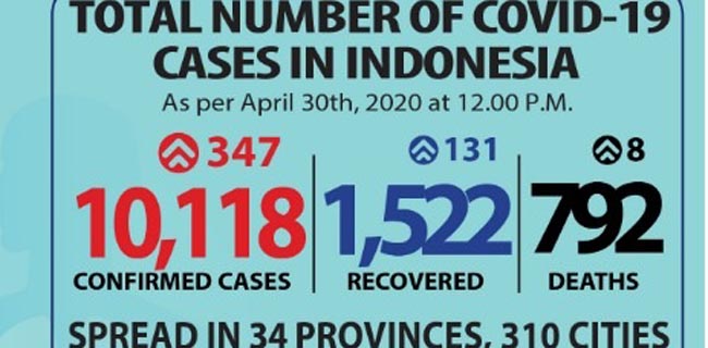 Berdasarkan data hingga Kamis (30/4) pukul 12.00 WIB, ia menyampaikan jumlah kasus positif, kasus pasien sembuh, dan kasus pasien meninggal yang kembali bertambah.