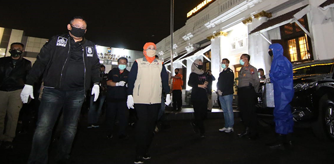 Gubernur Jawa Timur Khofifah Indar Parawansa memantau langsung masyarakat yang terjaring razia patroli gabungan pada Sabtu malam (2/5). Mereka yang diamankan langsung dilakukan rapid test di Mapolrestabes Kota Surabaya, Polres Gresik dan Polres Sidoarjo.