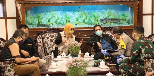 Turut mendampingi kunjungan kerja Gubernur Khofifah antara lain Sekdaprov Jatim Heru Tjahjono, Ketua Gugus Kuratif Covid-19 Jatim dr Joni Wahyuhadi, Ketua Gugus Tracing Covid -19 dr. Kohar Hari Santosa dan Kadis PMD Yasin.