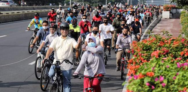 "Naik sepeda di masa pandemik juga ada protokol kesehatannya, seperti tetap menggunakan masker atau face shield. Silakan ikuti panduannya dari komunitas B2W Indonesia," jelas Anies.