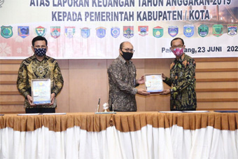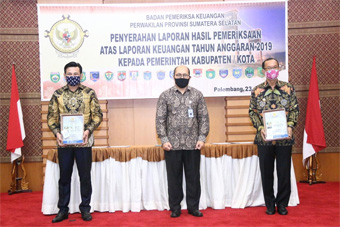 Badan Pemeriksa Keuangan RI Perwakilan Provinsi Sumatera Selatan, kembali menyerahkan predikat wajar tanpa pengecualian (WTP) atas laporan hasil pemeriksaan (LHP) keuangan dan laporan keuangan pemerintah daerah (LKPD) tahun 2019.