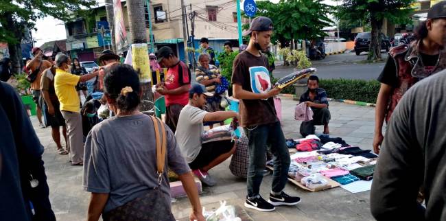 "Sampai akhirnya kami sepakati uang hasil mengamen dibelanjakan untuk kebutuhan nasi kuning total ada 150 pak nasi bungkus. Sisanya, kami belanjakan pakaian pantas pakai yang kemudian kami laundry dan kami bagikan ke warga membutuhkan," papar bapak satu anak ini.