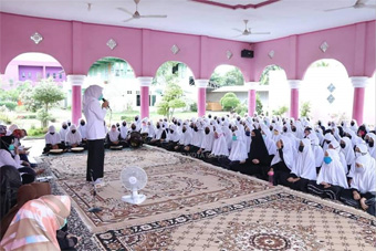 Di hadapan puluhan santri, Fitri tidak henti-hentinya mengingatkan agar masyarakat, khususnya par santri pondok pesantren, selalu taat menjalankan protokol kesehatan. Lantaran kondisi kota Palembang saat ini belum bisa dibilang aman dari penyebaran virus.