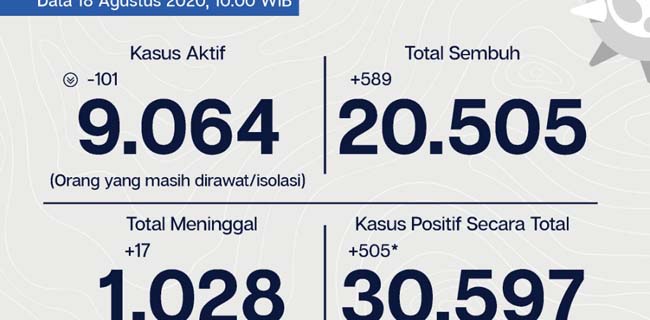 Per hari ini, Selasa (18/7), terjadi penambahan kasus positif sebanyak 505 kasus.