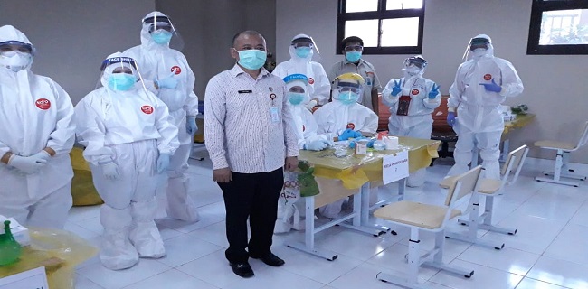 Kantor Berita RMOLBanten, rapid test massal dilakukan di dua titik yang berbeda yakni di SMP Negeri 3 dan SMP Negeri 5 Tangsel, pada Kamis (27/8).
