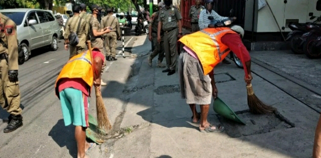 "Ini salah satu upaya kita untuk membuat efek jera bagi warga yang tidak mengenakan masker. Kita beri sanksi menyapu jalan dengan menggunakan rompi oranye," ujar Kasat Pol PP Kota Semarang, Fajar Purwoto saat memimpin razia masker dj Jalan Tentara Pelajar, Senin (31/8).