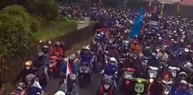 Berdasarkan video live di Facebook dari salah satu peserta aksi, terlihat ribuan buruh yang menggunakan kendaraan sepeda motor dengan mobil komando menutup jalan di bawah Flyover Summarecon Bekasi mengarah ke Jakarta.